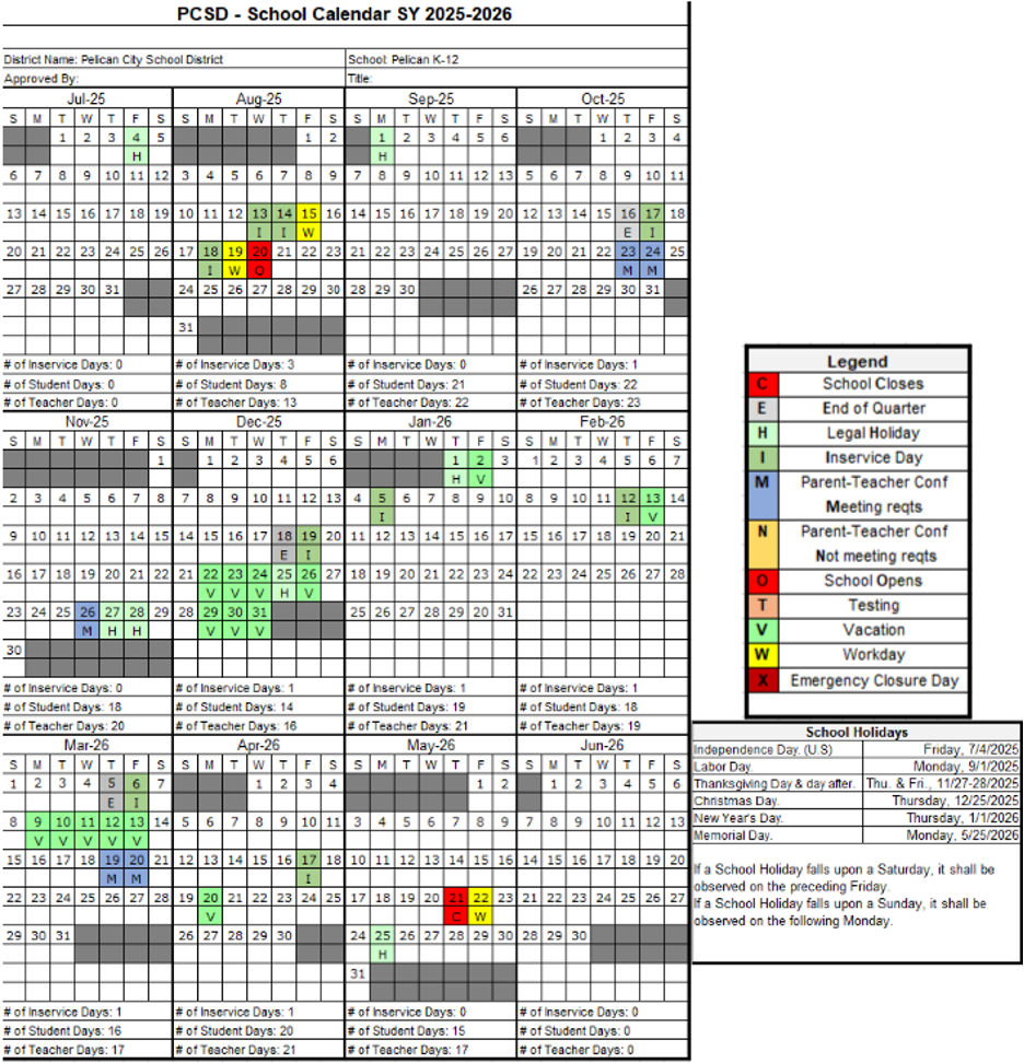 2025-2026 District Calendar